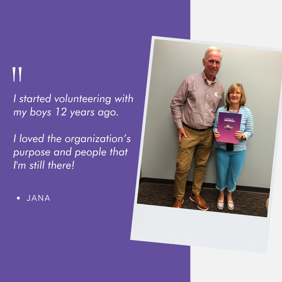 Jana began volunteering at A Gift for Teaching with her sons and has continued to volunteer herself so many years later! So much so, that she received a Universal Orlando Commitment to Volunteerism Award in 2023 for her selfless efforts.